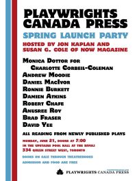 On June 21, Playwrights Canada Press launched their collection of Spring 2010 titles at the Rivoli, which included readings from the playwrights in question.